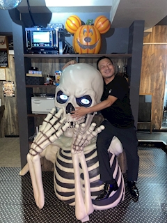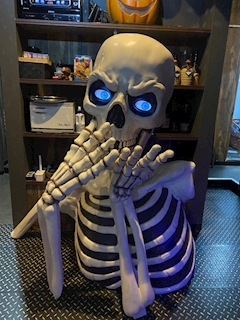 こんばんは!! Visのはるです! 今日もいます!! 4連勤目︎^_^がんばります 澤田店長とSexyガイコツくん✨ Visの中もハロウィン装飾になってます🧏🏼♀️ 🎃🎃🎃 Visで待ってまーーす😂😂