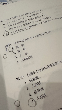今日は お休み です。 明日います!! さっきまで 8割とれて わーいってなってたんだけど 解き直ししてたら この71の問題 ⬇️ 呼吸中枢! 延髄だ!!!って自信あって答えたのに 答え合わせしたら 違ったから これ答えミスってね? んんん? ってなってたのよ よく見たらこれ延髄じゃなくて 頸髄じゃん!!! ってな感じで ゴミみたいな間違え方して萎え😭 模試でよかった、、