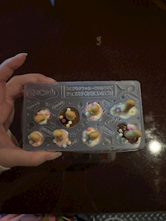 みーうちゃんと 知育菓子 やったおー!!! 楽しかったー💖 チョコ溶かして入れるやつだから簡単やん とか思ったけど 完成したやつ 上と下の比率がビミョくて 不細工💦